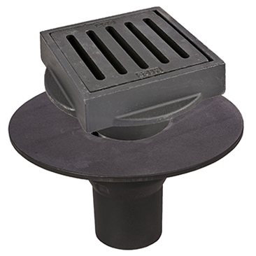 ACO TotalFlow gully set 170x170mm cast iron grating to load class K3 with bonding flange vertical outlet for tiled resin or concrete floors.