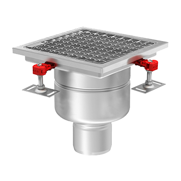ACO Gully218 Telescopic 300x300mm Gully for Concrete/Tiles/Resin floors with Slip Resistant Mesh gratings to L15. Flow rate 5.0-6.3l/s. With Clamping Flange. All in grade 316 stainless steel.